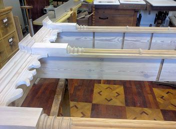 Nach Jahren der Scheunenlagerung erfreut sich dieses Familienerbstück nun mit neuem Aussehen. Die oberen Profile wurden ergänzt, Lackreste entfernt, alles von Hand geschliffen und mit weißen Öl-Wachs mehrfach eingelassen.